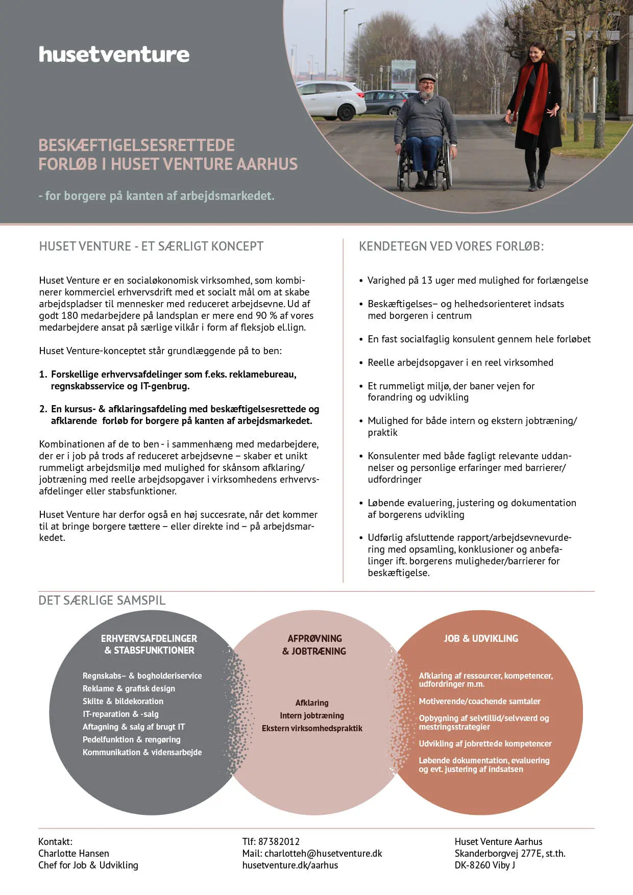 Download flyer om beskæftigelsesrettede forløb i Huset Venture Aarhus (pdf-fil, åbner i nyt faneblad).